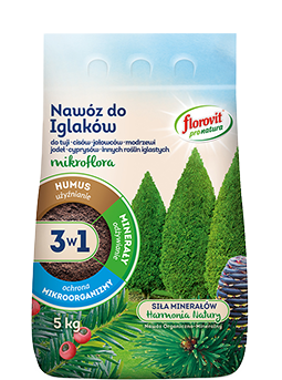 W nawożeniu iglaków doskonale sprawdzi się również nowość w ofercie Mikroflora 3w1 nawóz do iglaków, który zawiera naturalne substancje organiczne, które poprawiają jakość gleby (zwiększa żyzność) oraz substancje mineralne niezbędne dla prawidłowego wzrostu i rozwoju iglaków. Zawarte w tym nawozie związki próchnicze wykazują duże podobieństwo do próchnicy zawartej w kompoście czy oborniku. Jego systematyczne stosowanie w naturalny sposób odbudowuje właściwą strukturę gleby.